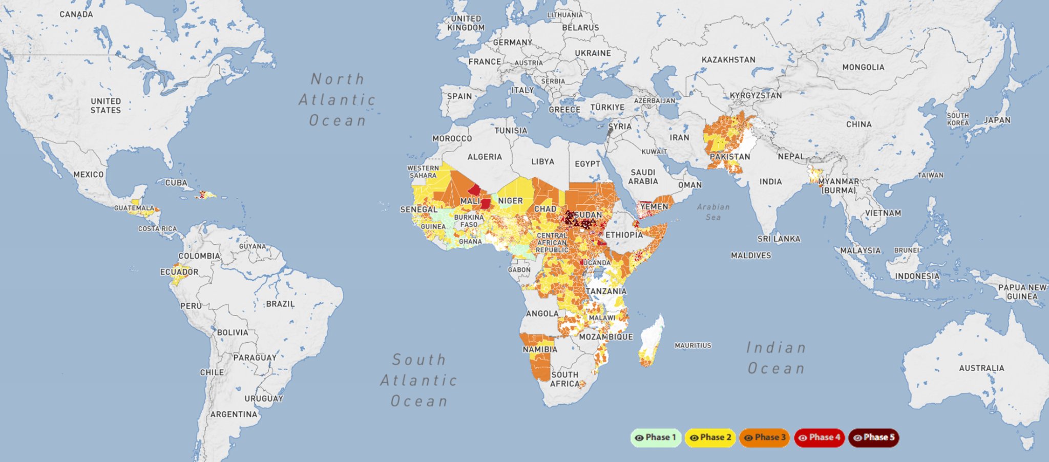 IPC 大數據來自各洲實地工作的聯合國人道救援夥伴機構合作收集,舉凡涵蓋糧食安全、營養、死亡率、人們的生計及卡路里攝入量、尋找食物的應對策略、監測營養不良兒童中上臂圍的測量值(MUAC)。
