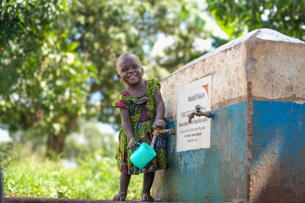 世界展望會在烏干達社區安裝了機械鑽井,鋪設管道並安裝水龍頭