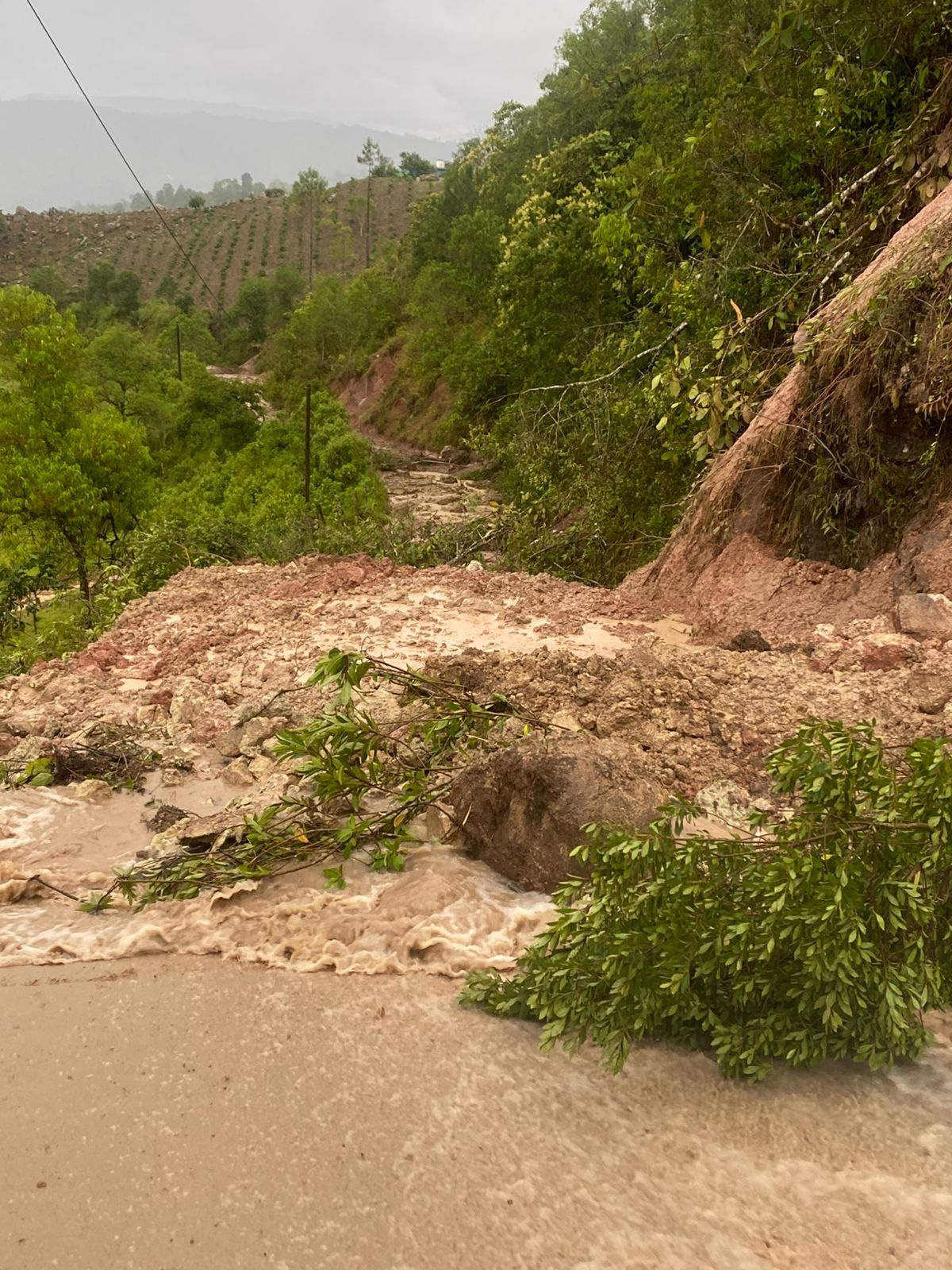去年六月流芳咖啡計畫區發生的土石流一度中斷村莊唯一的聯外道路。